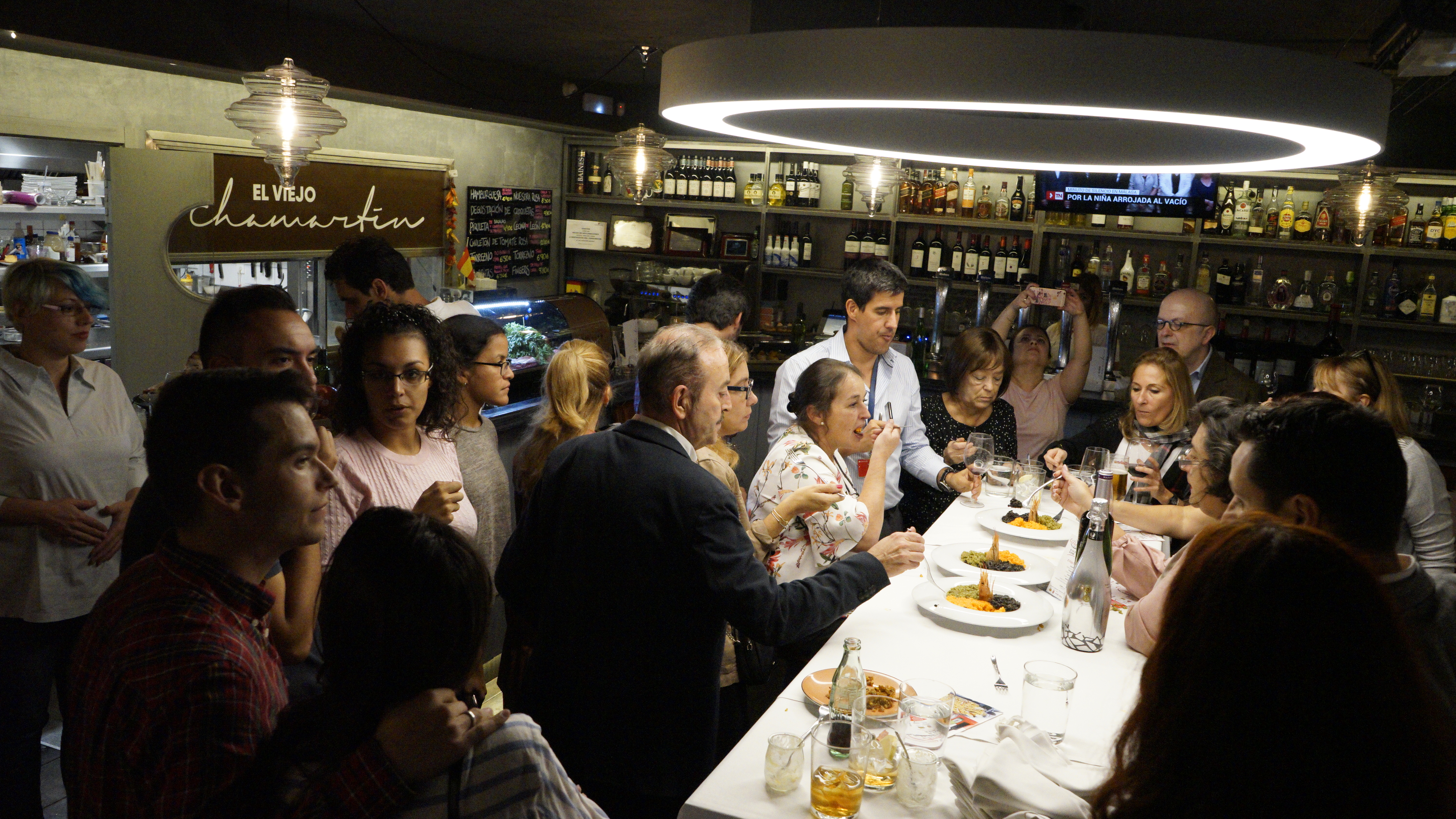 El 10 de octubre inauguramos la IV edición de la #rutadelapaella y el arroz de Madrid, patrocinada en esta ocasión por Bodegas Bocopa. Rompimos moldes en relación a anteriores presentaciones y organizamos una cena solidaria en el restaurante El Viejo Chamartín para 40 amig@s de la Iglesia de San Antón, obra social gestionada por el Padre Angel y Mensajeros de la Paz.